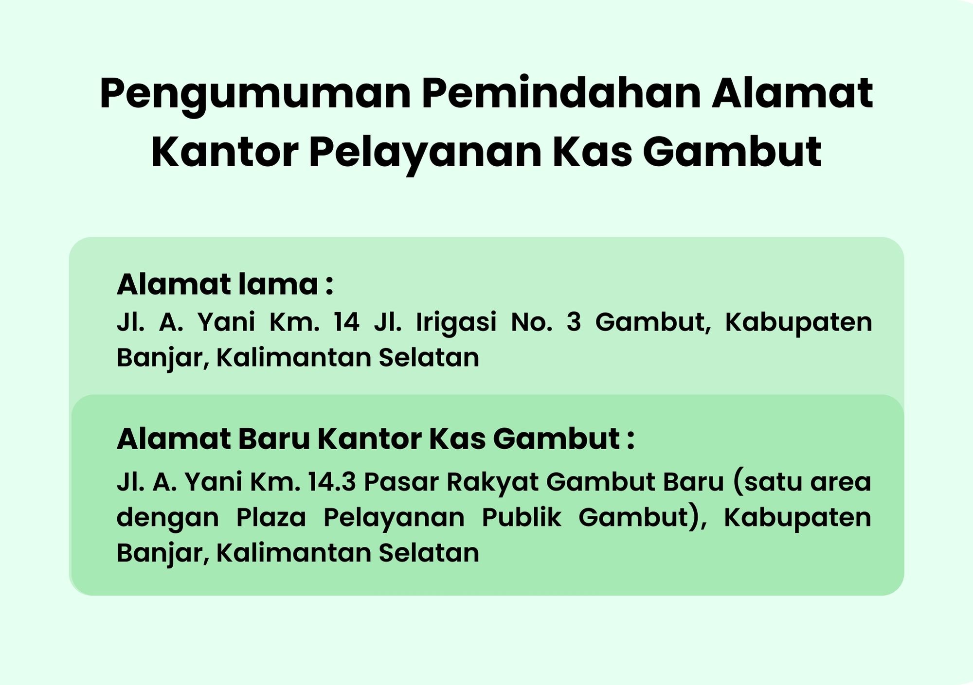 Pengumuman Pemindahan Alamat Kantor Kas Gambut PT. BPRS Barkah Gemadana